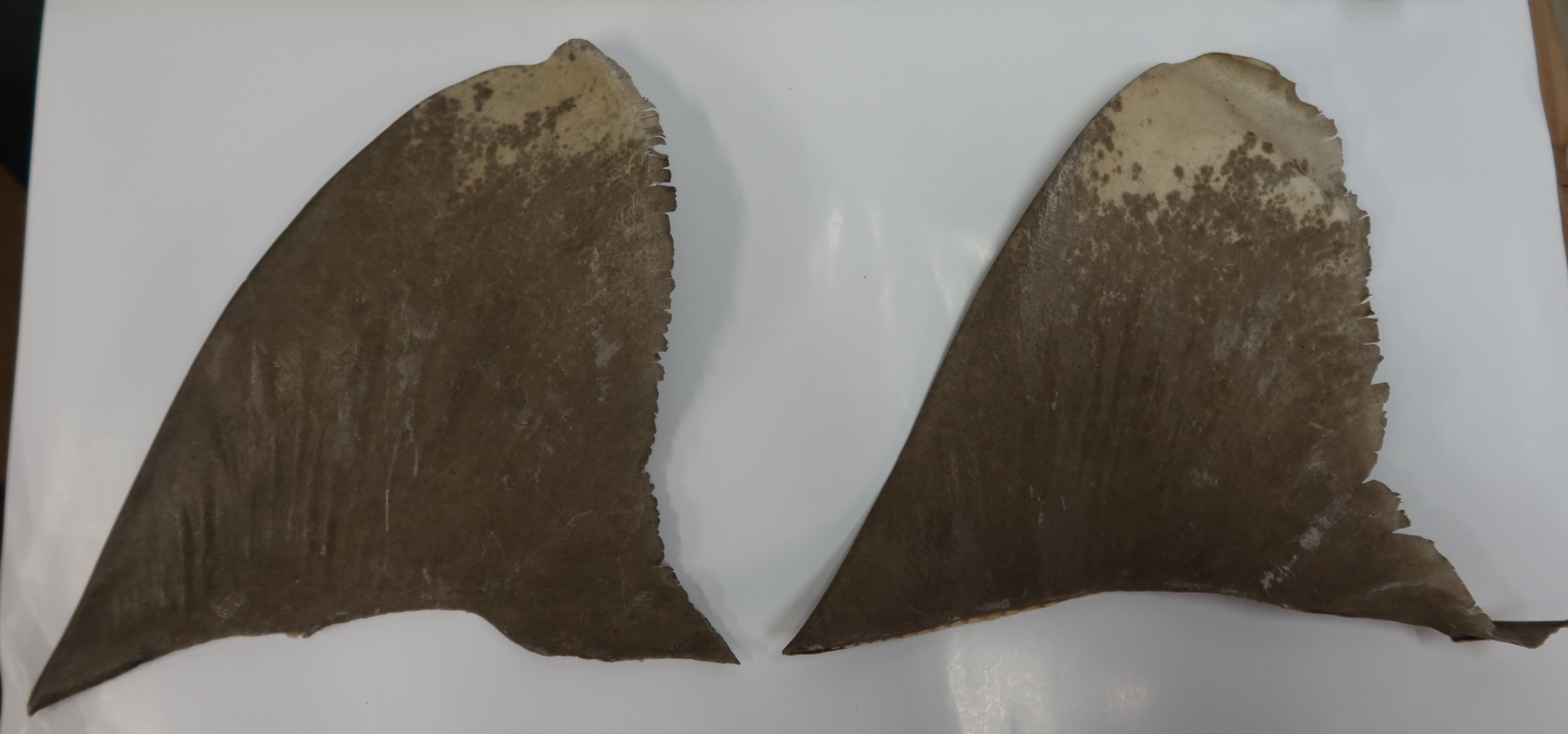 一名女子因非法进口濒危鲨鱼鱼翅,今日(九月二十三日)在区域法院被裁定罪名成立,判处监禁12个月。图示检获的双髻鲨鱼翅。